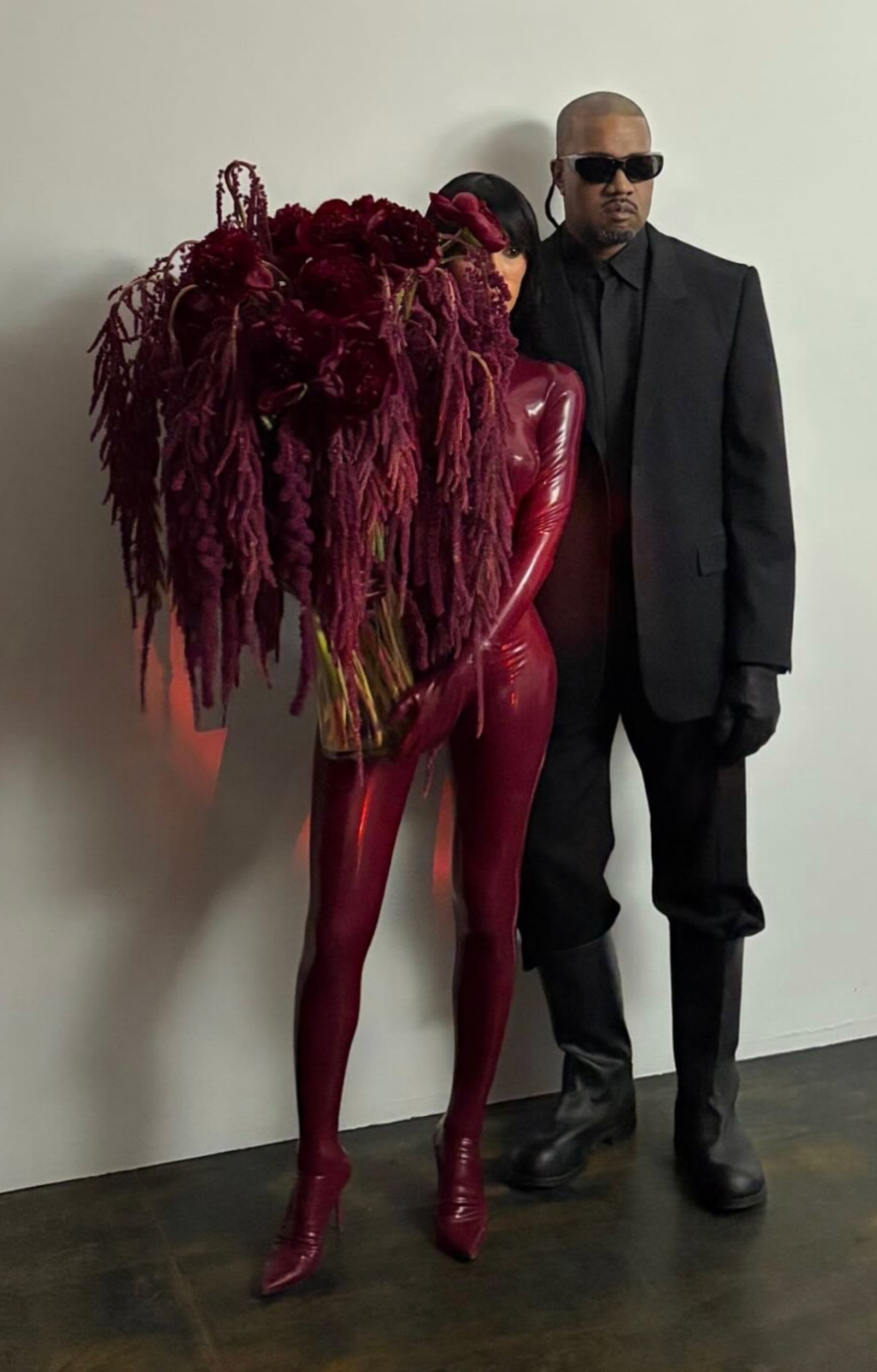 这周四,两东说念主在韩海外出时,比安卡整了个科幻感拉满的酒红色乳胶连体衣。