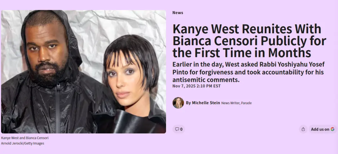 “在分隔数月后,侃爷几个月来初次公开与比安卡同框”